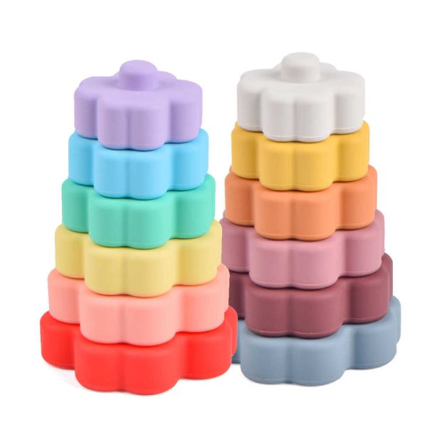 Morandi Flower Baby Silicone Toys Eco Silicone Stacking Tower Images |